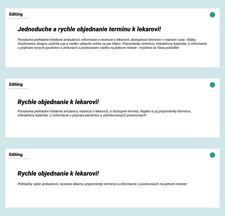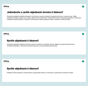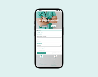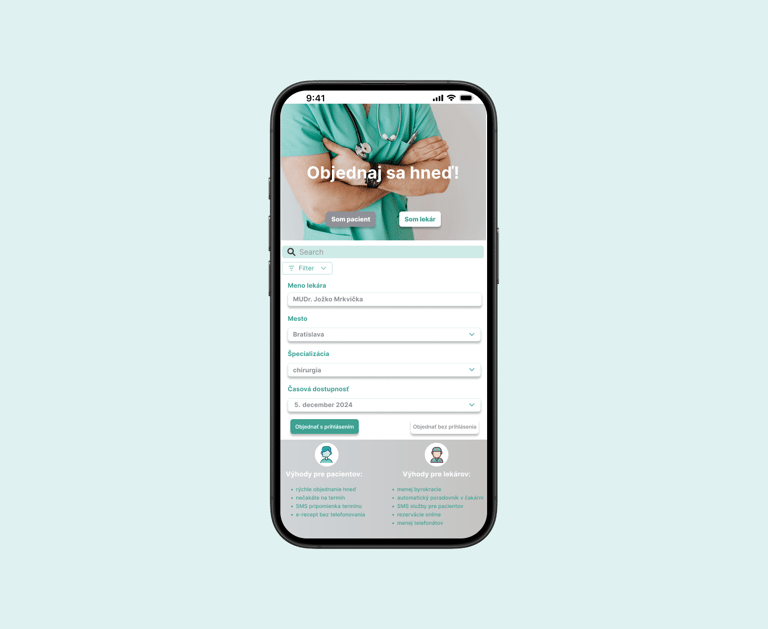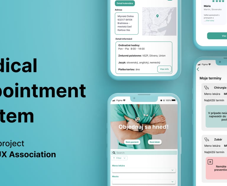 During the SUXA UX/UI course, our team of three designers worked on creating a digital platform that would help patients easily find and book available doctors in Slovakia.