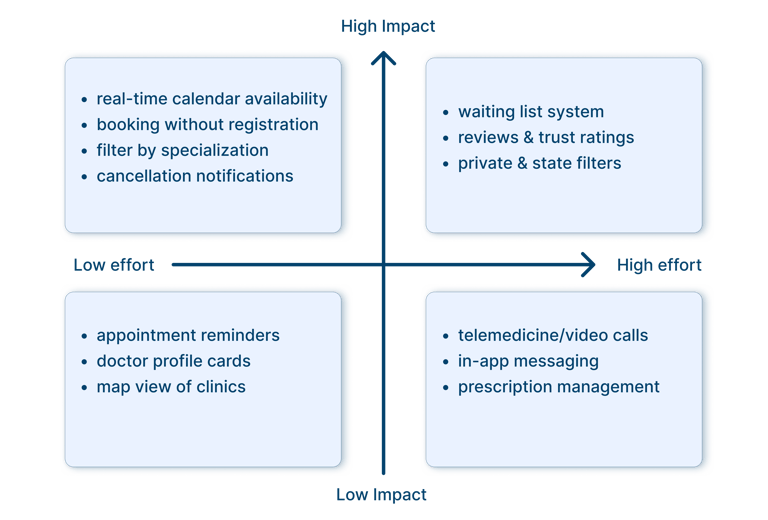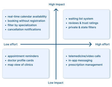 Needs: overview of available doctors, waiting lists, reminders, reviews