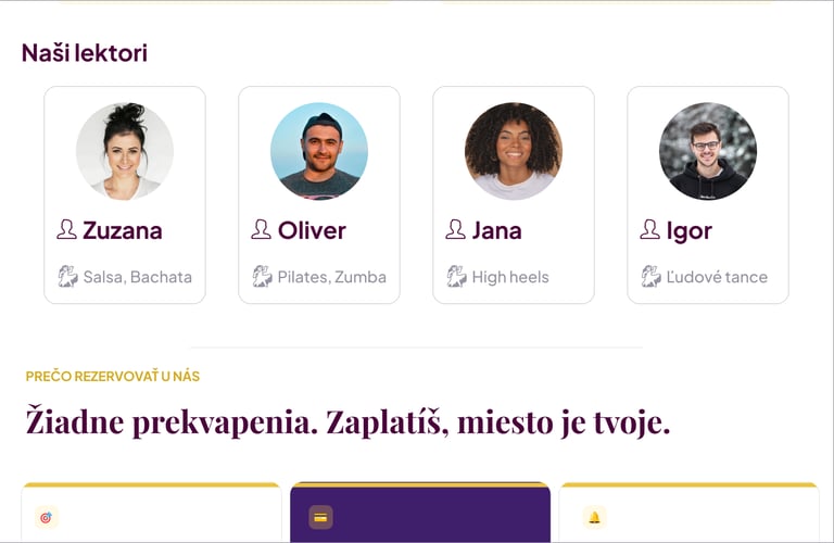 The owners wanted the website in the colors: deep purple, warm yellow, and clean white. My focus was on clarity, trust, and making the booking process feel as straightforward as possible.
